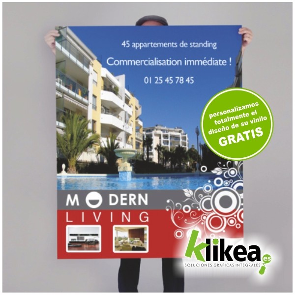 • Vinilo autoadhesivo polimérico de 75 micras y gran resistencia para aplicación en superficies planas o ligeramente irregulares que requieran larga permancia en exterior. Laminado brillo o mate a elegir. Impresión a color tanto de textos como fotografías.